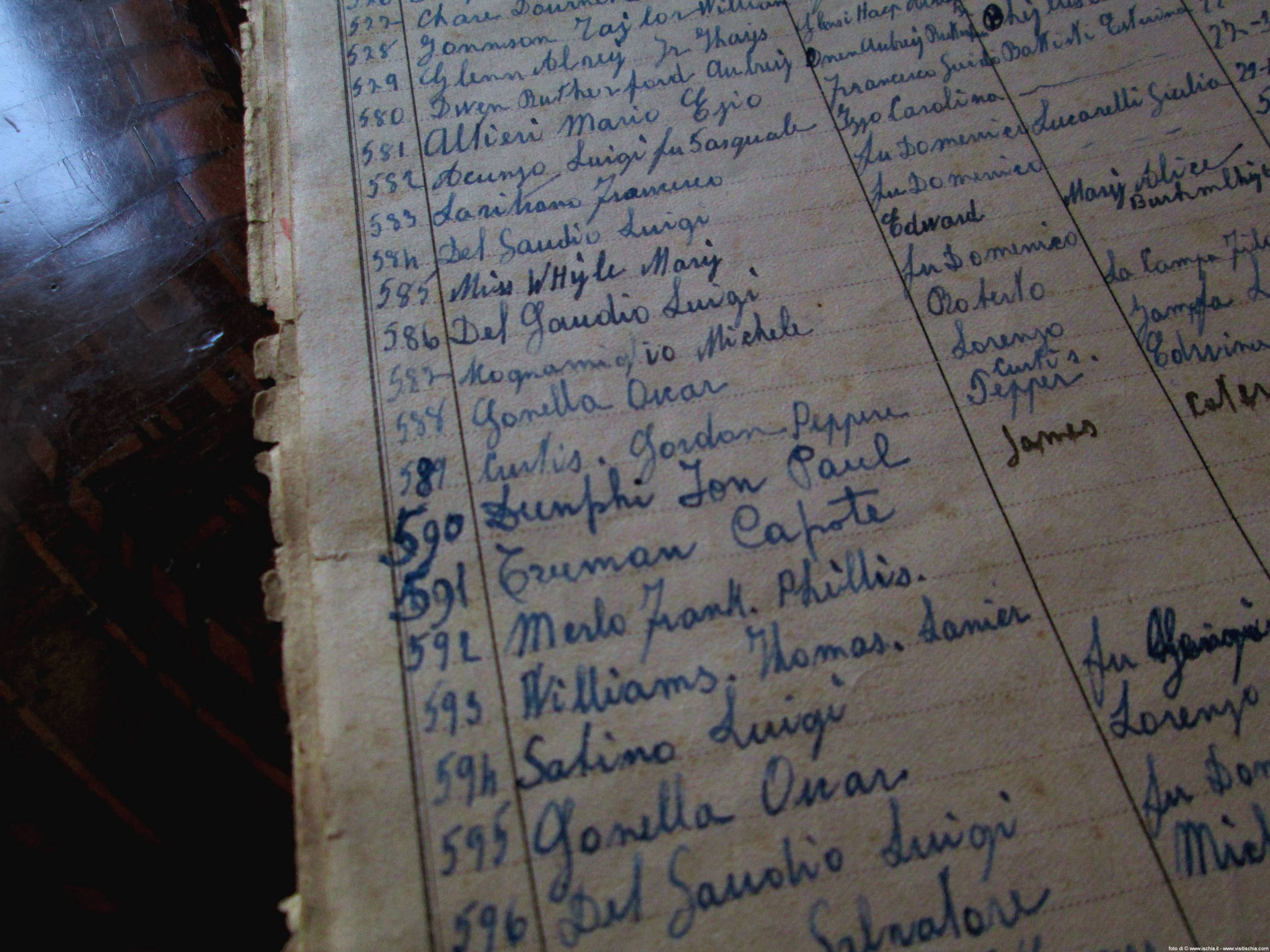La stanza di Truman è la n.3 ed è posta al secondo piano della pensione Di Lustro nel centro storico di Forio. Questa piccola pensione, di sole 10 stanze, fu aperta nel 1931 da Gaetano Di Lustro (1909-1982).