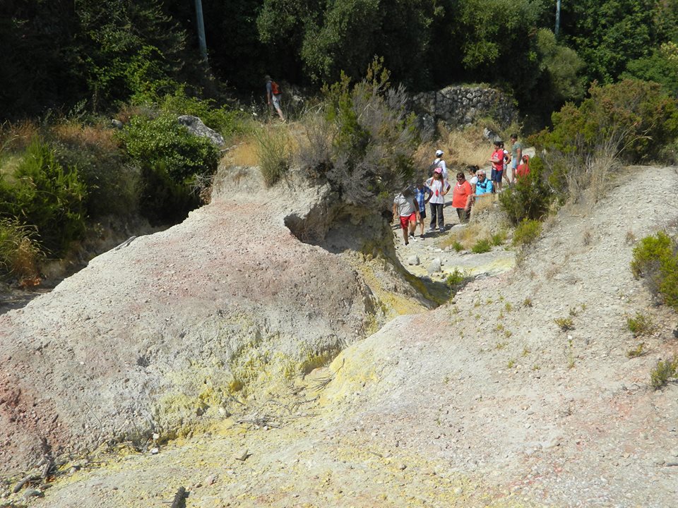 In quest’itinerario abbiamo percorso l’antica via Crateca, denominata dai contadini del luogo via “dei Carri”. Dal punto di partenza, attraverso un sentiero (oggi per la maggior parte strada carrabile!) bordato di rose canine, valeriane, ginestre, mirti, eriche e lentischi, si arriva fino al campo fumarolico di Monte Cito (220 m).