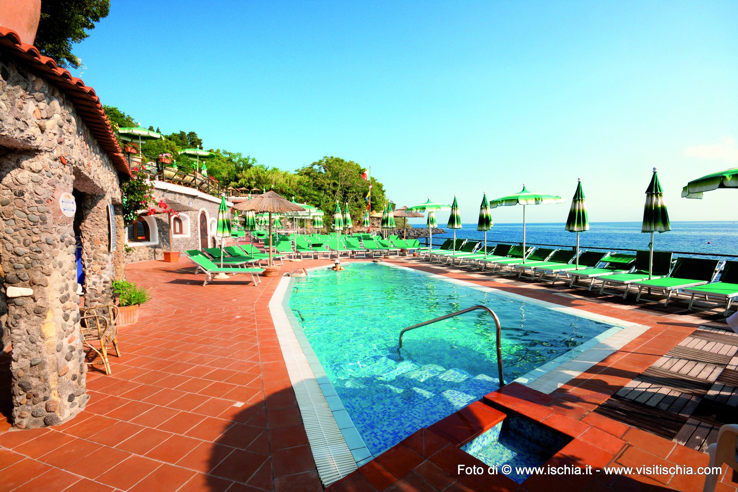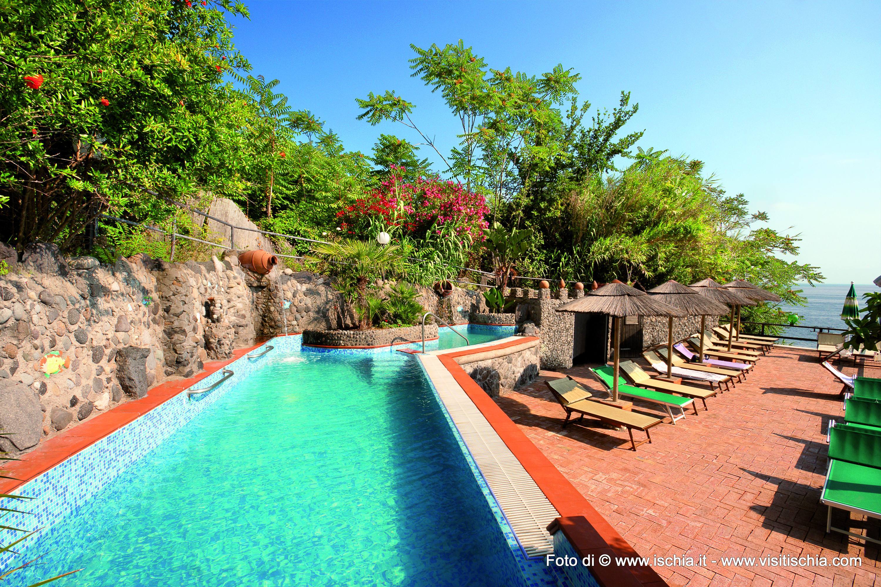 Oggi il parco ha 5 vasche, tutte di acqua termale, una sauna naturale e una vasca idromassaggio Jacuzzi a cui tutti i clienti del Parco possono liberamente accedere. Vicino al mare troviamo la piscina più grande (38°), mentre sulle balze, circondate da piante e fiori sono dislocate le altre quattro: una Kneipp, una piscina per i bimbi, una più piccolina e la Jacuzzi.
